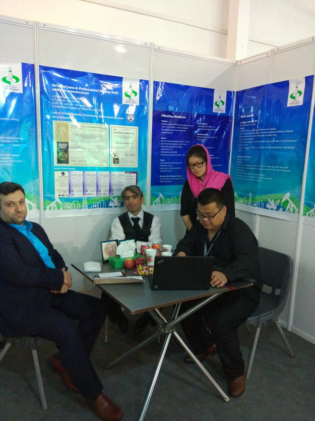 本次展會為我公司第一次參加伊朗石油展會,主要展示產(chǎn)品為我公司自主研發(fā)的主打產(chǎn)品七大體系19種種產(chǎn)品,如鉆井液用降濾失劑磺酸鹽共聚物DSP系列,低粘共聚物降濾失劑,抗高溫淀粉系列,腈硅聚合物;防塌劑系列如磺化瀝青,頁巖抑制劑鋁基聚合物;高密度鉆井液用極壓潤滑劑等等。